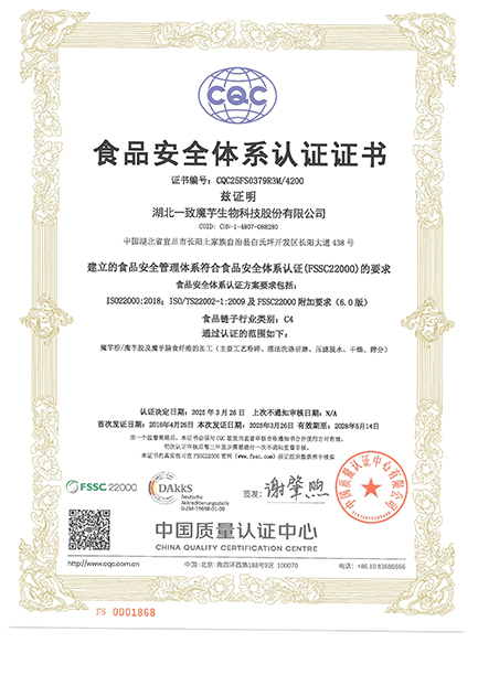2025年FSSC22000體系認(rèn)證證書(英文)