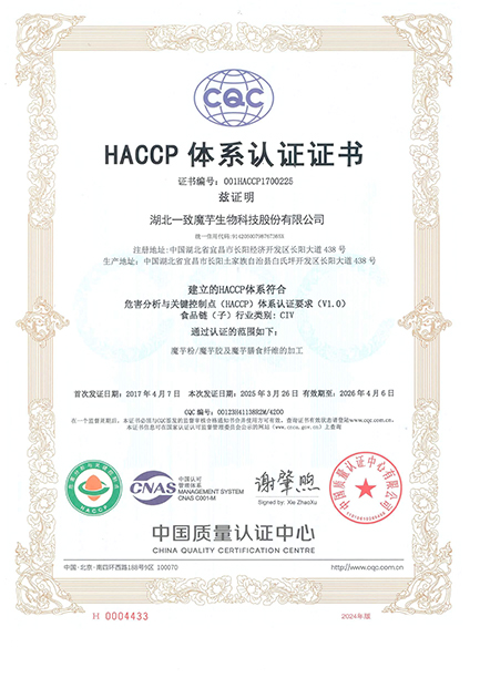 HACCP體系認(rèn)證證書(中文)
